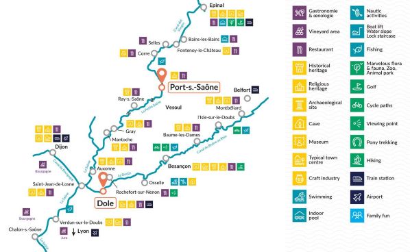 Dole – Port sur Saone: 154 km, 23 slussar, ca 24 timmar
