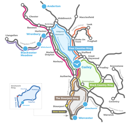 Gailey Marina har ett utmärkt läge för att utforska Black Country Ring. Rutten tar er först ut på Staffordshire & Worcestershire Canal, vidare genom Birmingham och därefter på Trent & Mersey Canal. Detta är en varierad resa som kombinerar pulserande stadsmiljöer med det vackra engelska landskapet.